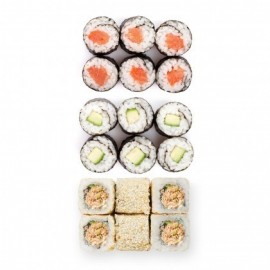 6 salmon rolls avocat cheese, 6 makis light saumon avocat, 6 snow rolls saumon cheese, 1 accompagnement au choix